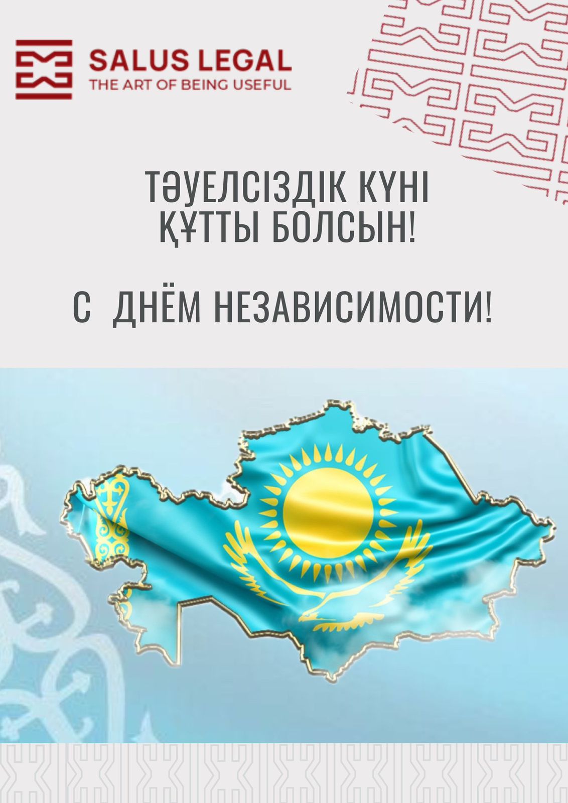 Юридическая фирма Salus Legal поздравляет Клиентов, Коллег и Партнеров с Днем Независимости Республики Казахстан!